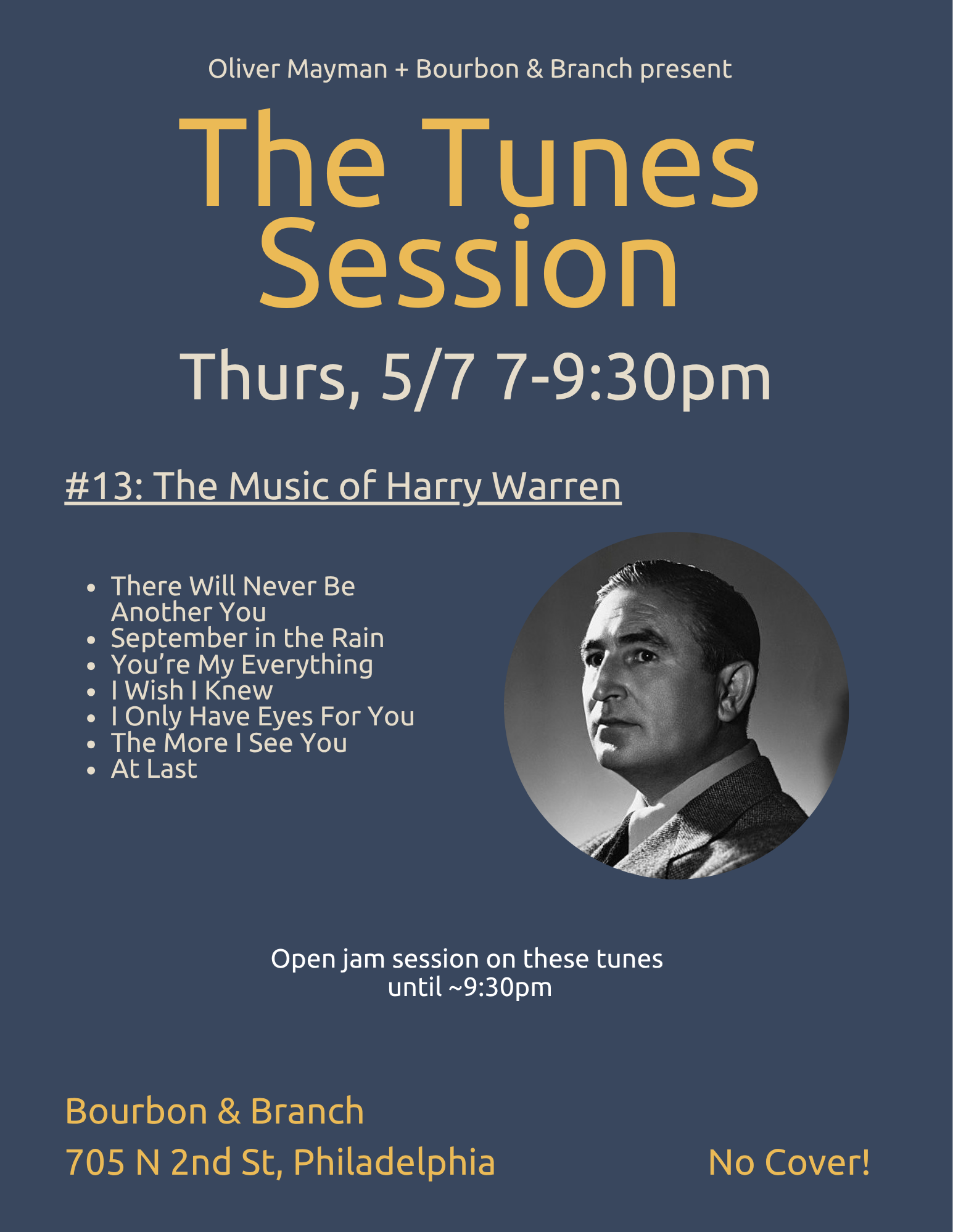 Every first Thursday, I host a jam session at Bourbon & Branch in Philadelphia, where we play through the repertoire of a chosen composer. I'll post the tune list here, sometimes along with links to original sheet music and original(ish) recordings when available.